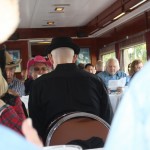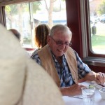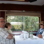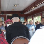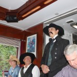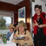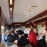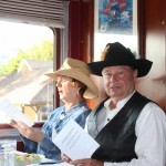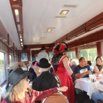 A dozen or so members met in Simi to caravan to Fillmore. The Fillmore train runs to Santa Paula and back, and along the way a number of actors entertained us while we dined on pork chops, prime rib, chicken, among other entrees. The mayor was eventually murdered – poisoned, and we had to determine who was responsible. We weren’t very good since only one table guessed the right answer. Jerry and Saralyn coordinated the run, and thanks and appreciation go out to them. Pictures courtesy of Marsha and Karen