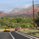 A dozen cars made the trip to Sedona, Az this year. We stayed at the Poco Diablo Resort and had great accomodations. All rooms opened to the 9 hole golf course, where we held the inaugural tournament. Five players attacked the course with one coming out on top. The winner’s name is withheld, to avoid the IRS catching on and expecting the huge payout to be on his tax return. Liz and Dale did a fantastic job of coordinating the run, including getting the hotel, stops along the way, and meals in Sedona. For us southern Californians, it was refreshing to see cloudy skies, and dumping rain at times. Some of us drove the red rock loop – very scenic. Others opted for the pink jeep tour. Most enjoyed the river dinner cruise led by Captain Bob. We preselected our menu items. On the trip to Sedona, we stopped in Laughlin on the way there, and there were a few different schedules for driving home.